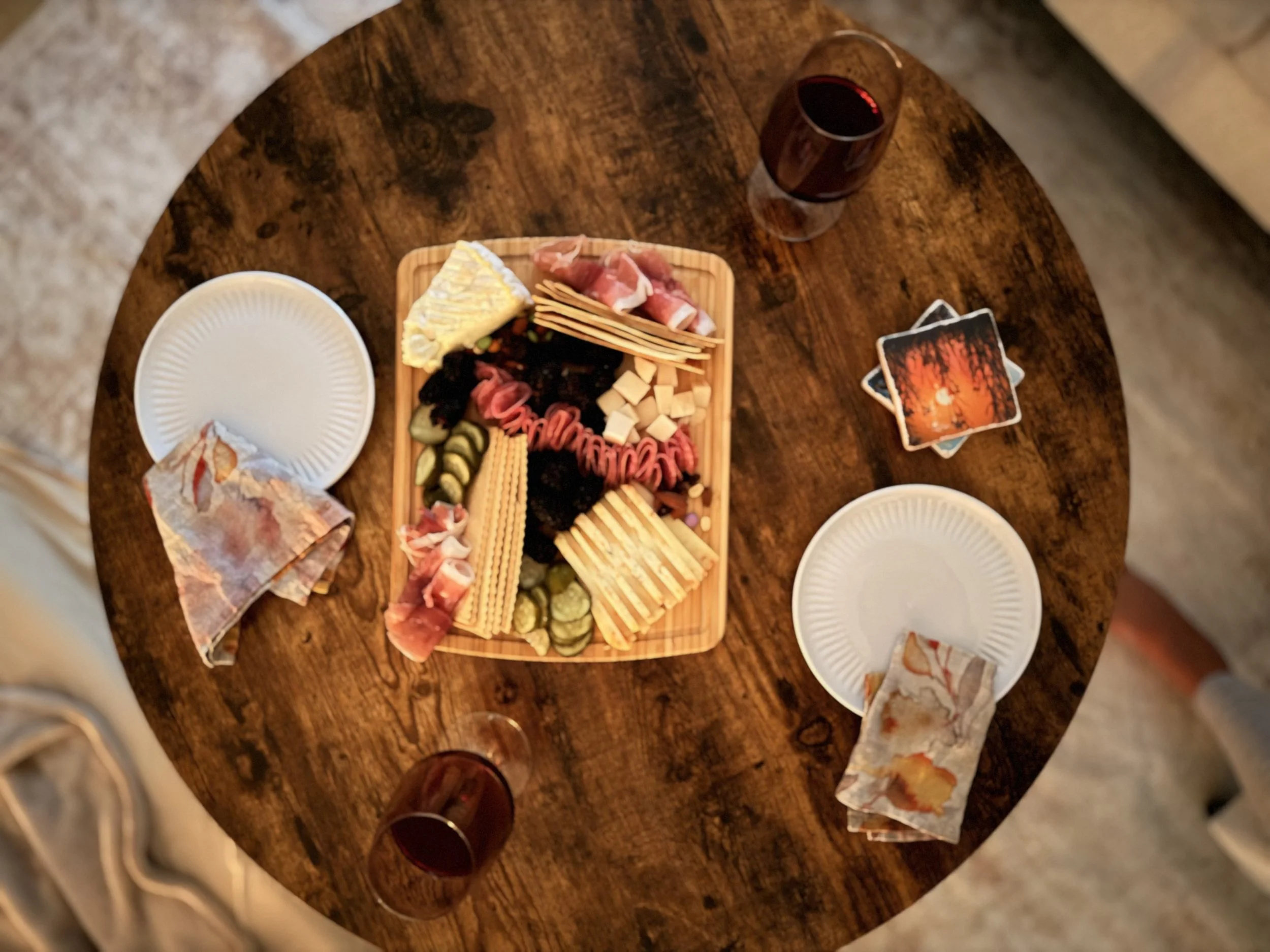 We ended up on the floor, legs stretched out, leaning against the couch with our glasses in hand, picking at the board. At the same time, we talked, not about anything profound — just life, family, work, the things only a sister understands without explanation.